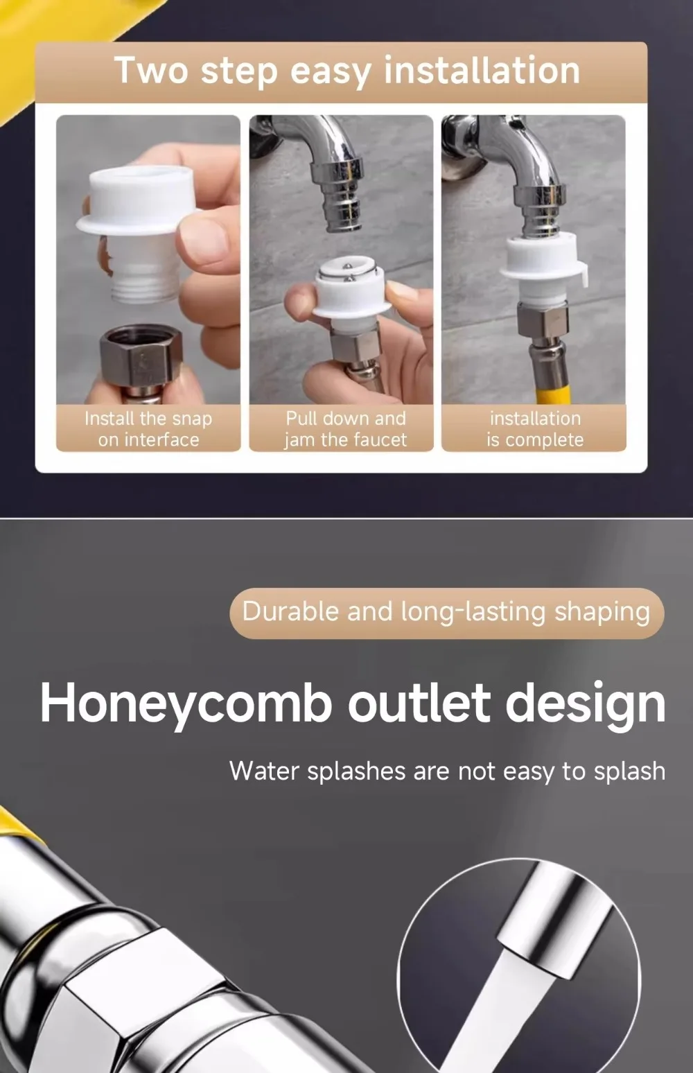 360°Flexible Full Rotating: The faucet extender turn it or adjustable in whatever direction or angle you want, making it easy to clean oversize supplies in sink or such as big plates or pan etc.