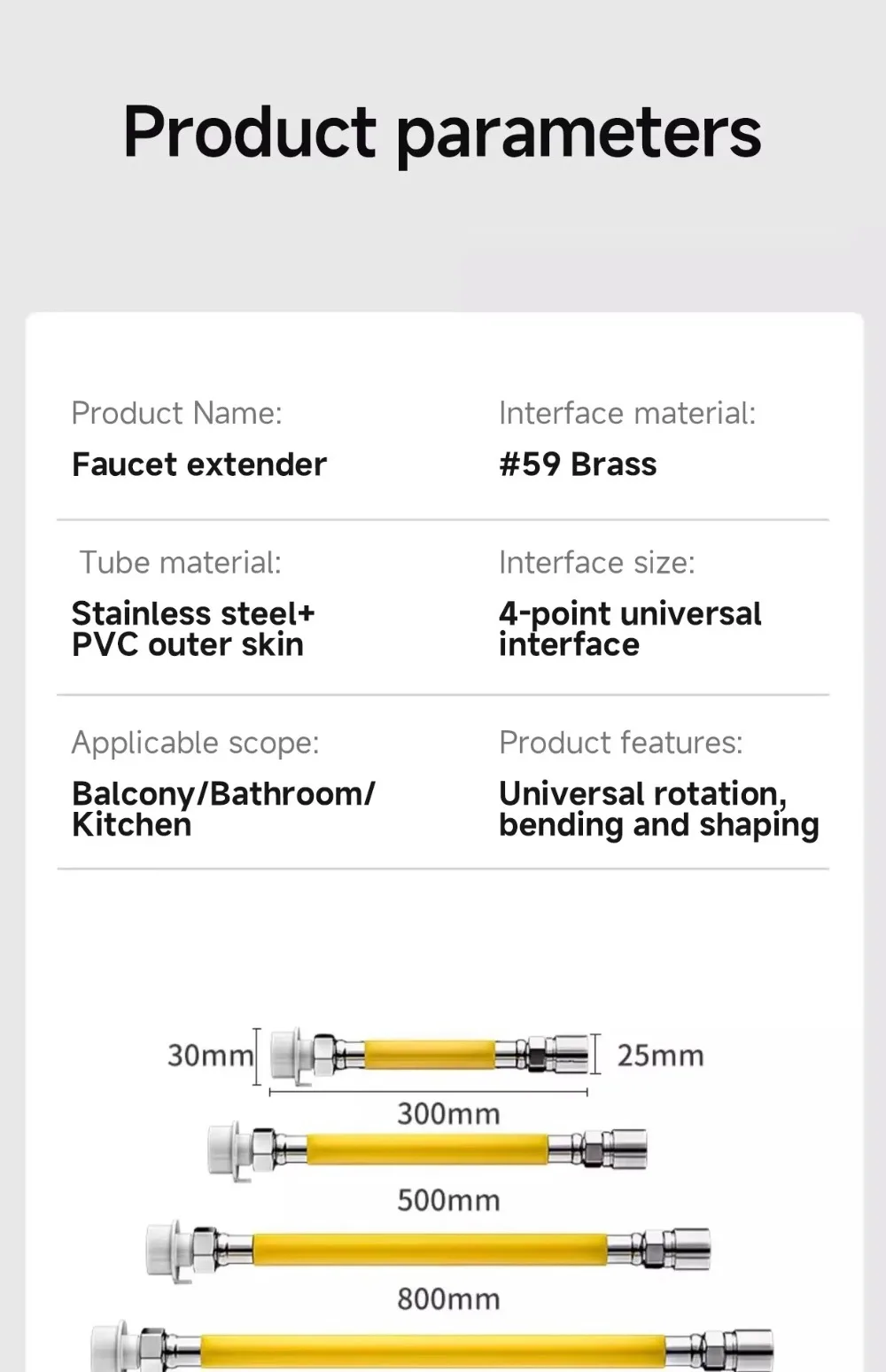 2 Mode Adjust Faucet Extension Extender Adjust Stainless Steel Extension Tube Free Bending Splashproof 360 Degree Extension Tube