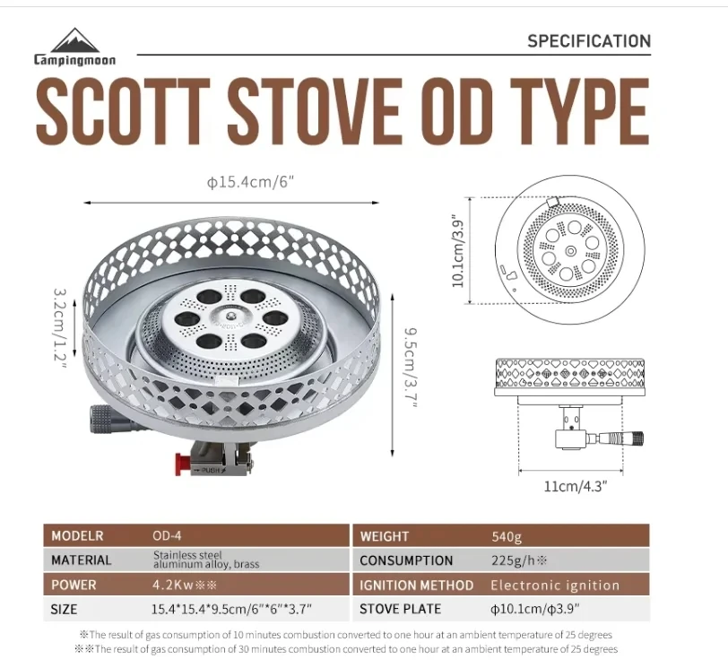 CAMPINGMOON OD-4 Scott High Mountain Stove Camping Large Diameter Windproof and Stable Pressure Stove Head High Power Gas Stove