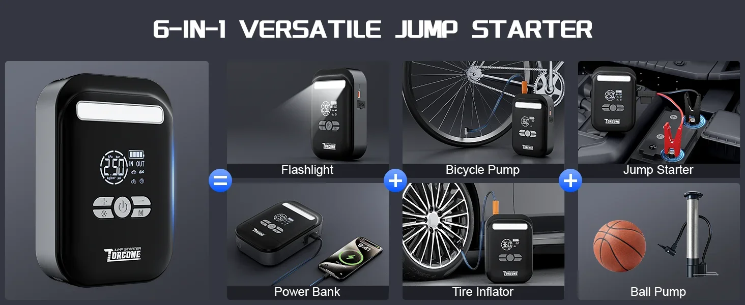 Car Jump Starter with Air Compressor 6000A Battery Booster 150PSI Air Pump 20000mAh (10.0L Gas/8.0L Diesel) Portable Power Bank