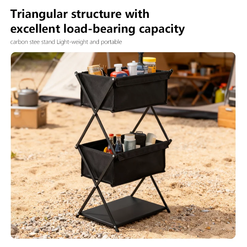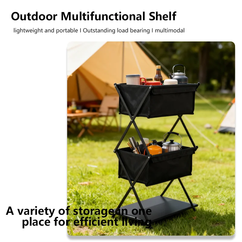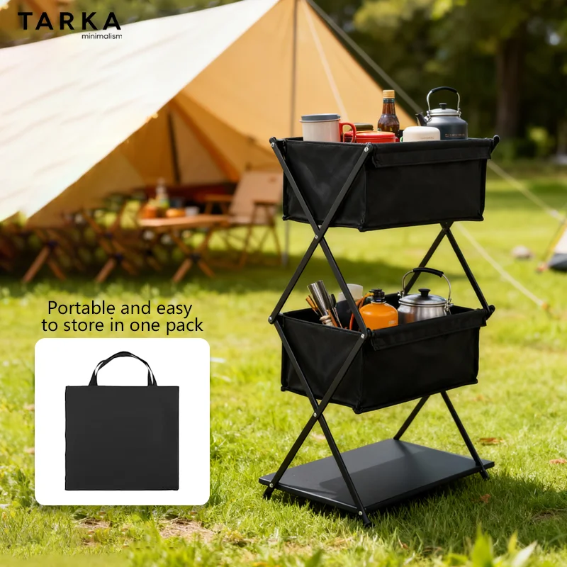TARKA Camping New Storage Rack Three-Layer Shelf Folding Storage Rack For Outdoor Barbecue Storage Rack Multifunctional Shelf